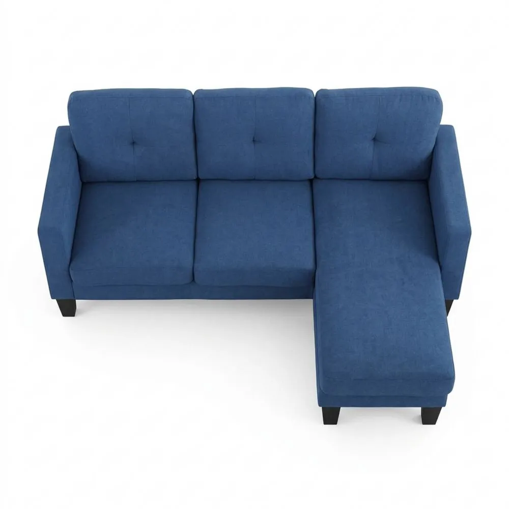 Sofá Chaise Longue en L para 3 personas, tapizado en chenilla, estructura de acero, azul, 186 x 130 x 84 cm